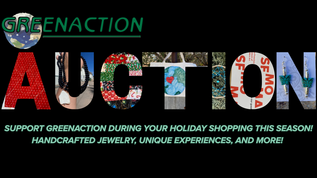 - Check out dozens of available items, including handmade jewelry, unique experiences, access to performance art, and more! Click here to view some of the items available in the Greenaction auction