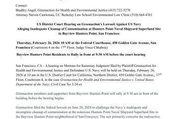 September 14, 2022: Letter from Bayview Hunters Point Community and Environmental Justice Groups to San Francisco Board of Supervisors calling for full cleanup of all radioactive and toxic waste at Hunters Point Shipyard Superfund Site.
