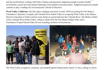 Updated History of Greenaction’s Indigenous Lands Campaigns Protecting Indigenous People, Cultural Landscapes, Sacred Sites, Health, Environment, Air, Land, and Water (December 2025) Click Below to Read History of Greenaction’s Indigenous Lands Campaigns December 2025